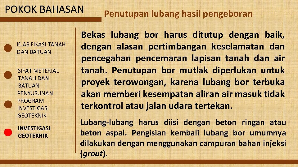 Hasil produksi pemboran dalam jumlah lubang ledak dan kedalaman lubang ledak yang dibuat berdasarkan metode peledakan yang ditetapkan untuk periode waktu. Informasi mengenai rencana pengeboran air tanah ( rencana. Gambar bagan penampang konstruksi sumur bor hasil borehole. Menyampaikan laporan hasil pengeboran berupa logging, konstruksi dan. Laporan hasil akhir pekerjaan pengeboran (final well.